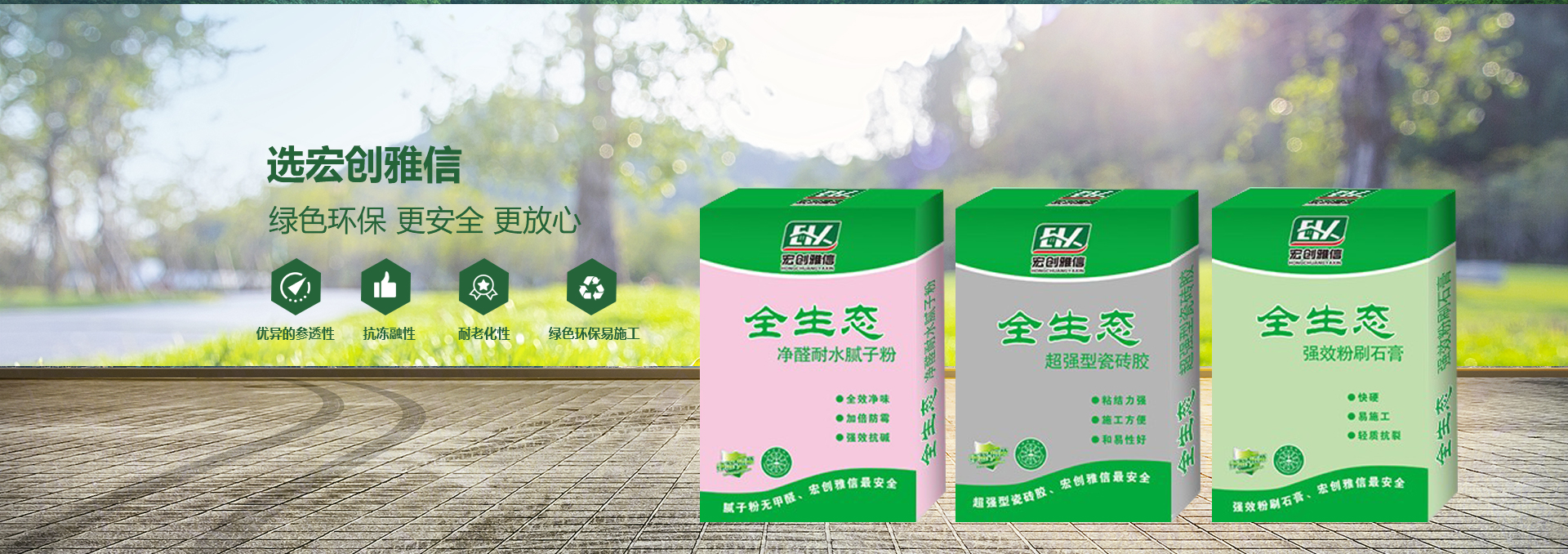 宏創雅信裝飾材料北京有限公司(威海分公司)是一家生產,研發,運輸,施工綜合性股份制企業,主要產品:快粘粉、嵌縫石膏、內外墻耐水膩子粉、內墻超細膩子粉、高強石膏、粉刷石膏、瓷磚粘接劑、填縫劑、內外墻防水涂料、108膠、聚合物粘接砂漿、聚合物抗裂抹面砂漿、灰鈣、重質碳酸鈣、砌筑砂漿、膠粉聚苯顆粒、浮雕骨料、?;⒅楸厣皾{、FTC相變節能保溫砂漿、SF增水保溫砂漿、等產品。